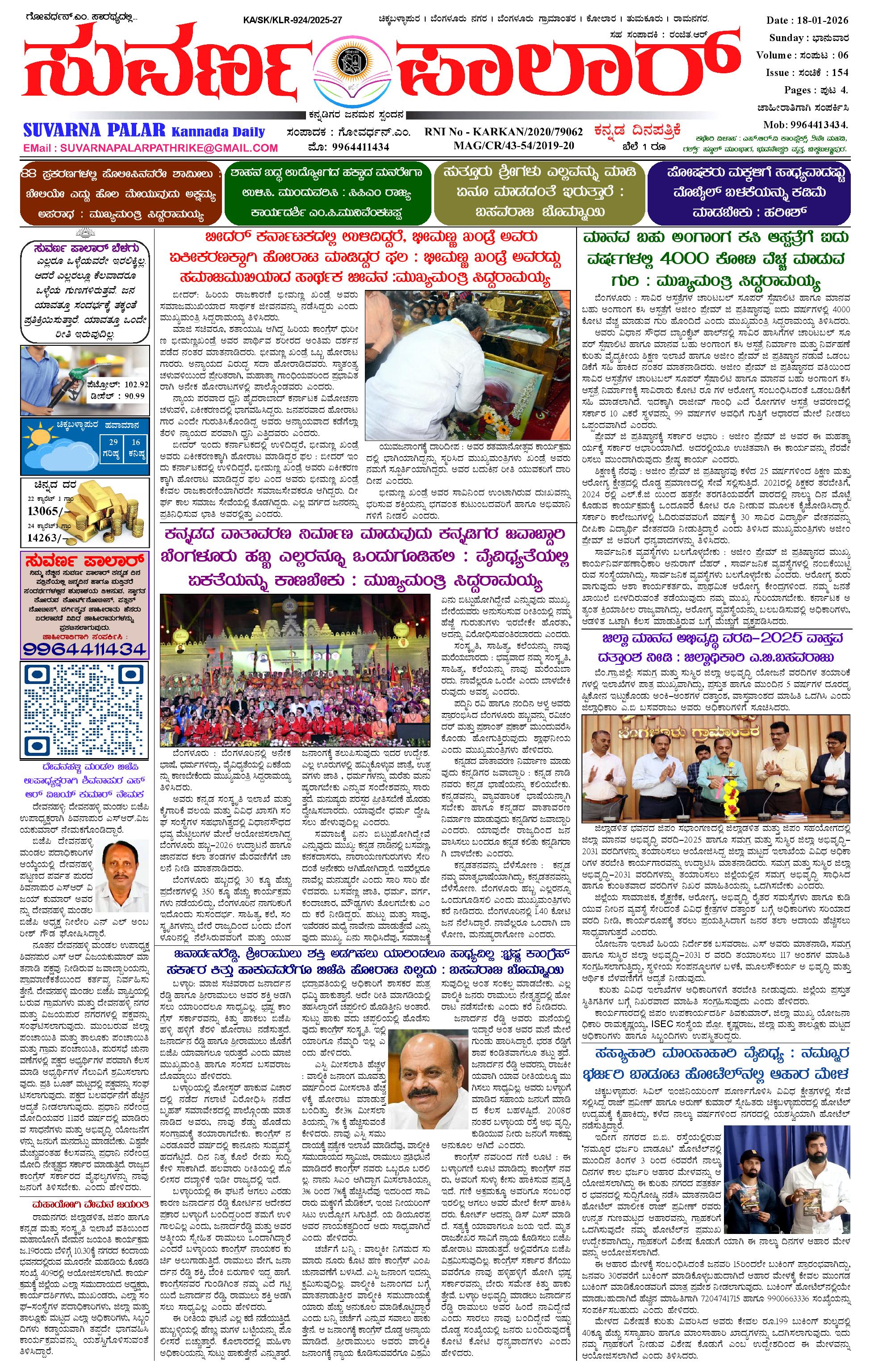 ಸುವರ್ಣ ಪಾಲಾರ್ 18 Jan 2026